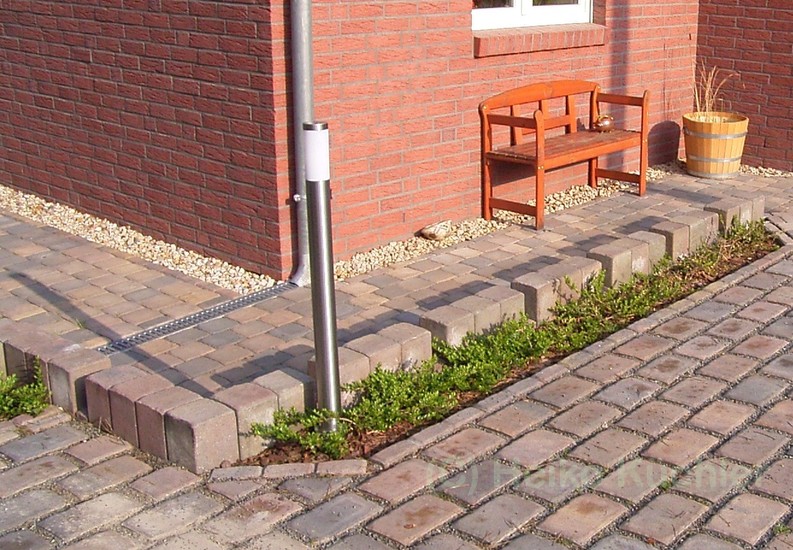 - nächstes Bild: Farblich abgestimmte Betonpalisaden und Pflasterung